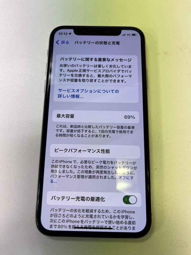 お預かりした時のバッテリー最大容量は69%と劣化が出ているものでした。