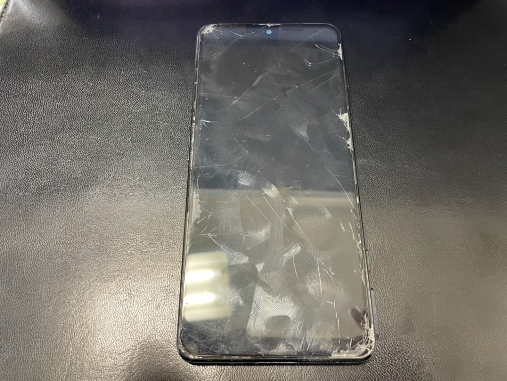 お預かりした端末は画面ガラスが割れてしまっておりました。