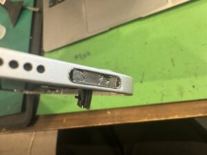 画面を取り外すと右上にスリープボタンを固定するパーツがございますので取り外します。