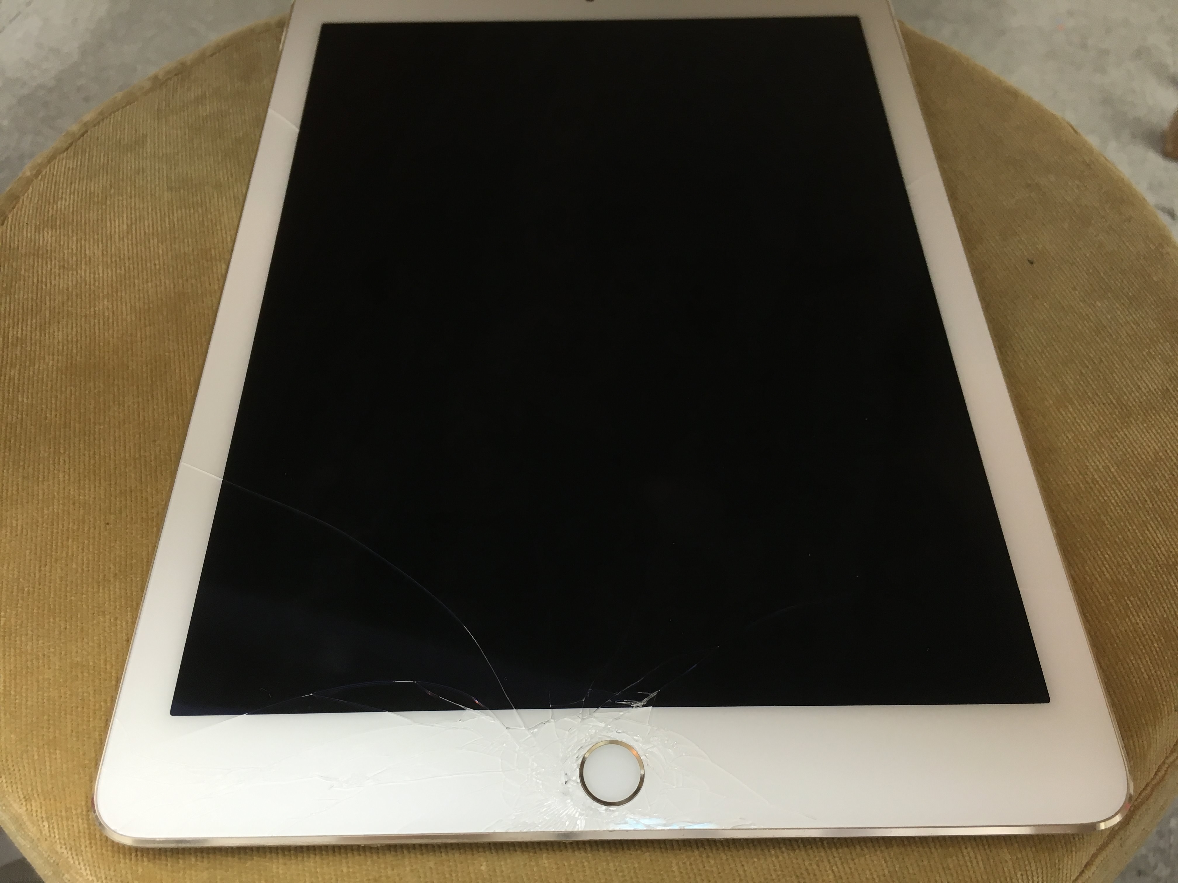 このように、特にホームボタン周りのガラスが激しく割れてしまっています。