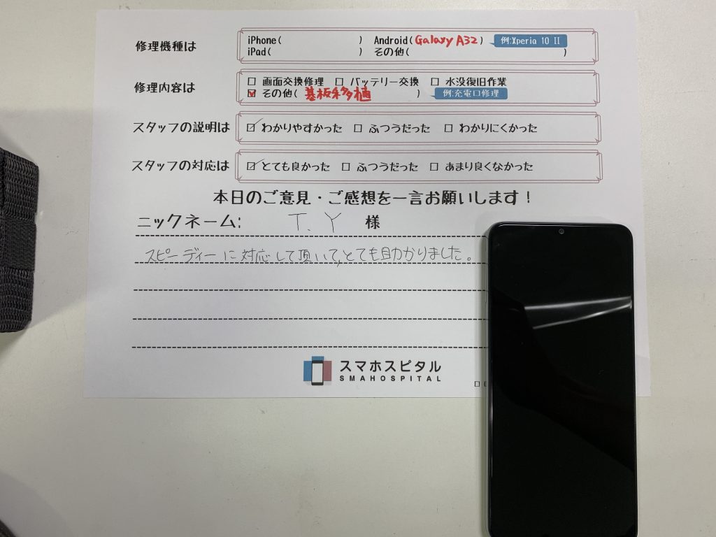 スマホスピタル横浜関内 Galaxy A32 5G 基板移植にてご利用のお客様のコメント!