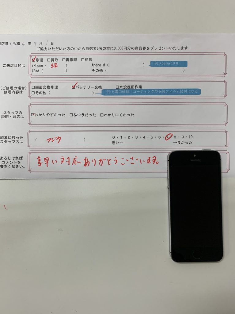 スマホスピタル横浜関内 【iPhoneSE】膨張したバッテリーの交換修理承りました!