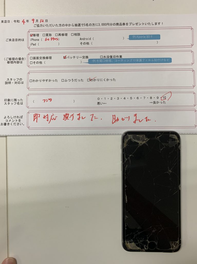 バッテリー交換と念のため画面交換まで視野に入れて対応させていただきました。