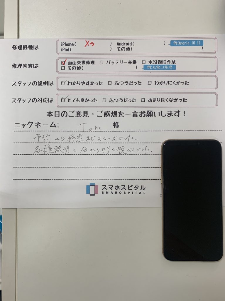 スマホスピタル横浜関内 【iPhoneXs】画面交換にてご利用のお客様からのコメント!
