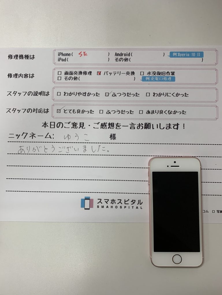 スマホスピタル横浜関内 【iPhoneSE】古い端末のバッテリー交換もお任せください!
