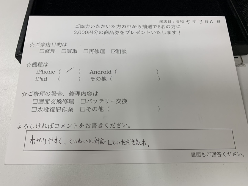 わかりやすく、ていねいに対応していただきました。