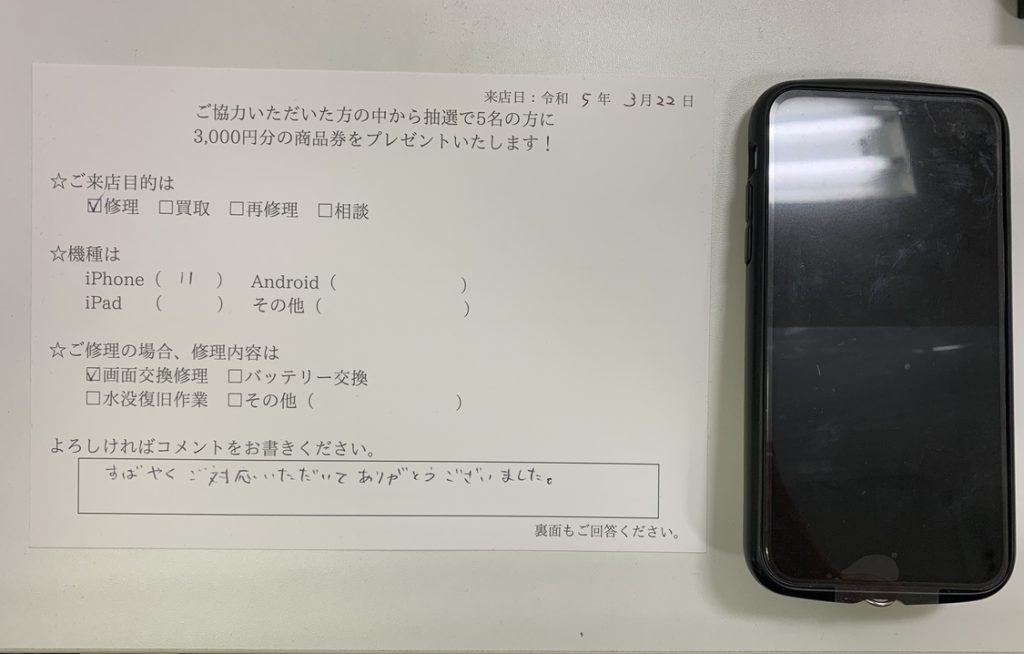スマホスピタル横浜関内 【iPhone11】画面交換にてご利用のお客様からのコメント!