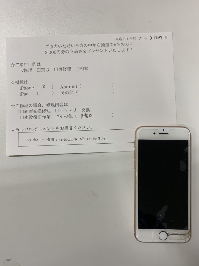スマホスピタル横浜関内 【iPhone8】充電口交換にてご利用のお客様からのコメント!