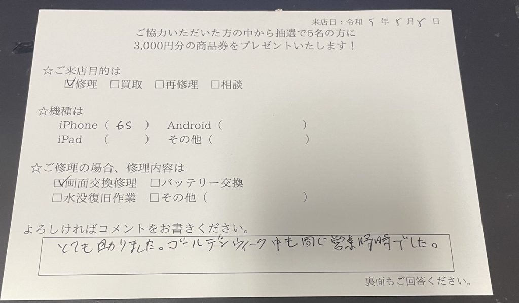 iPhone6sの画面交換ご依頼の方からコメント!