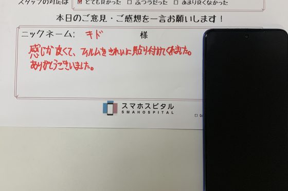 フィルム貼り付けサービスをご利用のお客様のコメント!