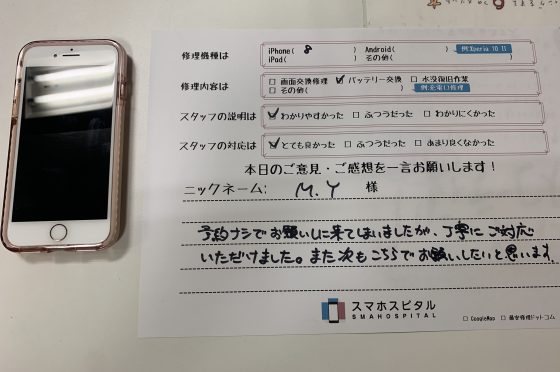 iPhone8 バッテリー交換にてご利用のお客様からのコメント!