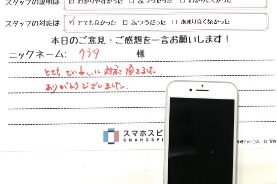 iPhone8 画面交換にてご利用のお客様のコメント!
