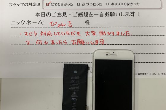 iPhone 8 バッテリー交換にてご利用のお客様のコメント!