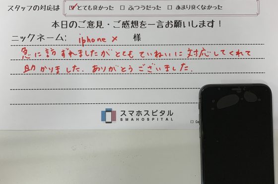 iPhoneX 画面交換にてご利用のお客様のコメント!